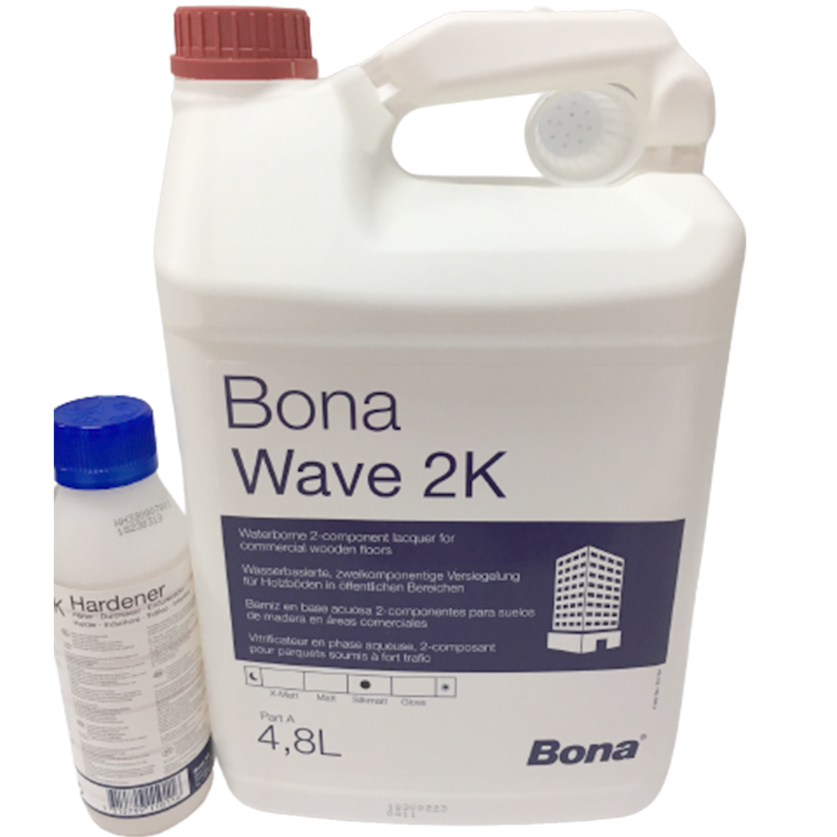 Lakier wodny poliuretanowy 5L: Bona Wave jest 2-komponentowym, poliuretanowym lakierem na bazie wody. Przeznaczony jest do pokrywania podłóg drewnianych w obiektach użyteczności publicznej, gdzie wymagana jest wysoka odporność na ścieranie. Zawiera mniej niż 4% VOC, a mimo to zapewnia wytrzymałą i trwałą powierzchnię. Bona Wave ma bardzo słaby zapach i otrzymał certyfikat DIBt dotyczący niskiej emisji lotnych związków organicznych. Bona Wave nadaje podłodze jasny kolor, nie żółknie i jest bardzo łatwy w utrzymaniu. Znakomita odporność na ścieranie i chemikalia używane w gospodarstwie domowym Wysoka odporność na ślady po obcasach Spełnia normę DIN 18032:2 (odpowiedni poślizg dla podłóg sportowych)