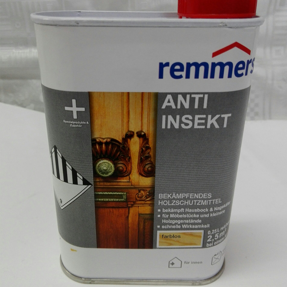 Rozpuszczalnikowy, szybko-działający środek do zwalczania szkodników drewna.